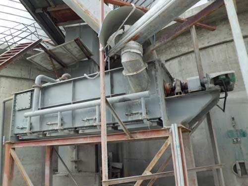 在裝有攪拌軸、葉片攪拌箱體底部,裝備帶有透氣層的充氣箱。充氣箱由羅茨風(fēng)機(jī)鼓入高壓空氣、物料進(jìn)入攪拌箱后,受攪拌箱底部充氣箱的氣化作用而流態(tài)化,之后由攪拌箱中攪拌軸葉片的作用而充氣攪拌,由于出料位置在攪拌箱的上部,經(jīng)攪拌后的物料從出料口溢出。出料口以下的物料則與后續(xù)的進(jìn)入攪拌箱內(nèi)的物料再進(jìn)行充分?jǐn)嚢韬蠼?jīng)出料口溢出。由于攪拌箱內(nèi)物料充分流態(tài)化,加上物料的溢流式結(jié)構(gòu),物料中的渣子將沉積在攪拌箱底部。待混料機(jī)工作到一定時(shí)間需停機(jī)時(shí),從攪拌箱側(cè)面下部的清渣口清出。