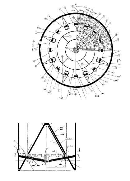 - MF生料均化庫采用分配器和六根斜槽呈輻射狀卸入庫內(nèi)