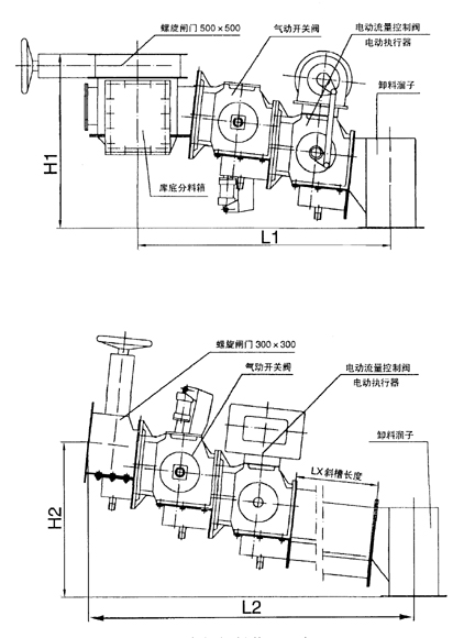 庫底卸料裝置由庫底螺旋閘門、庫底分料箱、電動(dòng)(氣動(dòng))開關(guān)閥、電動(dòng)流量控制閥及卸料溜子組成,用于水泥生料粉或水泥的庫底卸料。庫底卸料裝置能自動(dòng)調(diào)節(jié)卸料流量且均勻,其結(jié)構(gòu)合理,操作維護(hù)簡(jiǎn)單方便,最多可設(shè)三個(gè)卸料口,用戶也可選用庫側(cè)卸料裝置。