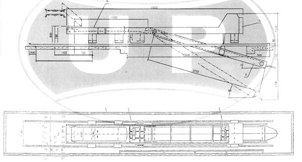 該變幅裝車機(jī)系統(tǒng)由平形膠帶機(jī)、卸袋機(jī)構(gòu)、端部溜槽、中間溜槽等組成。變幅裝車機(jī)的平形膠帶機(jī)的支架采用鋼板折彎結(jié)構(gòu),即美觀又牢固;驅(qū)動裝置采用擺線針輪減速機(jī),節(jié)省占地面積;張緊方式為中間垂直螺旋張緊。變幅裝車機(jī)的卸袋機(jī)構(gòu)由轉(zhuǎn)臂立式膠帶機(jī)、電動推桿和支架三部分組成,當(dāng)不需要水泥袋從中間位置卸下時(shí),立式膠帶機(jī)處于包裝膠帶機(jī)的側(cè)邊;當(dāng)需要水泥袋從中間位置卸下時(shí),由電動推桿拉動立式膠帶機(jī)使其擺動與包裝膠帶機(jī)縱向成交叉位置,并開動立式膠帶機(jī)即可。變幅裝車機(jī)的立式膠帶機(jī)的兩個(gè)擺動極限位置設(shè)有限位開關(guān),其在工作和非工作狀態(tài)下的定位由限位開關(guān)來實(shí)現(xiàn)。特殊設(shè)計(jì)的溜槽能使水泥袋恰好落到膠帶機(jī)的中心位置。