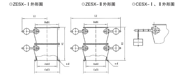 鎖氣翻板卸灰閥為上下交替開閉,自動復位機構(gòu)。分為:z為重錘自動復位機構(gòu),具有運轉(zhuǎn)平穩(wěn)、節(jié)能,卸灰量大、小可調(diào),卸灰、鎖氣可靠之功能。C為吊錘自動復位機構(gòu),具有占地面積省、節(jié)能,卸灰調(diào)節(jié)方便,卸灰、鎖氣可靠之功能。B為凸輪、連桿傳動,重量自動復位機構(gòu);D為凸輪、連桿傳動,彈簧自動復位機構(gòu),具有結(jié)構(gòu)緊湊、設(shè)計合理、運轉(zhuǎn)平穩(wěn),卸灰、鎖氣可靠。是各種無粘度的固體粉料,小于Φ10mm的顆粒料,晶體料,團狀料,給、卸料工況的理想設(shè)備。Ⅰ型為單板卸料,Ⅱ型為雙板卸料。