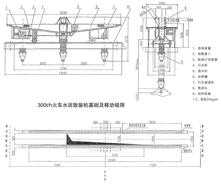 2、散裝頭下降行程上限2500mm,移動距離上限6000mm